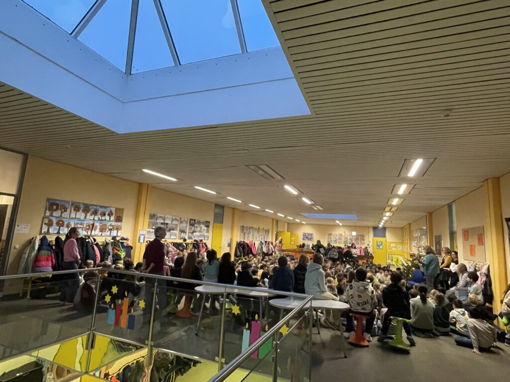 Jeden Montag in der Adventszeit treffen sich alle Kinder der Grete-Schickedanz Grundschule zu einer gemeinsamen Feier in der Aula. So wurde jede Woche im Advent mit gemeinsamen Liedern und einer Adventsgeschichte besinnlich gestartet. Kurz vor Weihnachten besuchte uns dann sogar das Hersbrucker Christkind.
