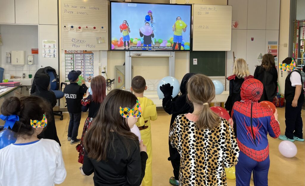 Zum großen Finale zog die gesamte Grundschule in einer langen Polonaise mit lauter Musik durchs Schulhaus – ein buntes, lebendiges Band aus fröhlich verkleideten Kindern und Lehrkräften. Anschließend stimmten alle Kinder bei der Maskenprämierung für die beste Lehrer*innen‑Verkleidung lautstark ab und kürten den Gewinner.